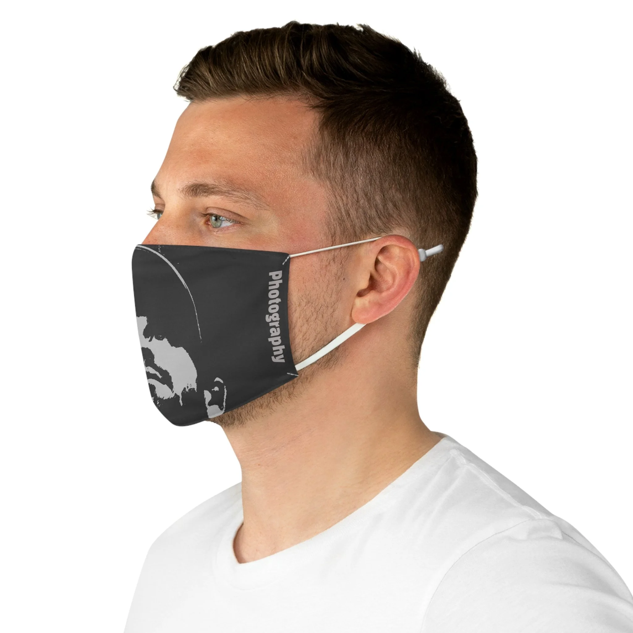 A soft, sculpted fabric face mask featuring a bold monochrome portrait across the front. Two-layer polyester construction gives it structure and quick-drying performance, while adjustable nylon-spandex earloops with silicone beads let you fine-tune the fit. The high-contrast print holds crisp detail and deep blacks, so the expressive design reads clearly whether you’re out running errands or meeting friends. Lightweight and contoured to sit comfortably over the nose and mouth, this mask becomes part of your everyday look — a subtle statement piece that blends function with photographic edge.