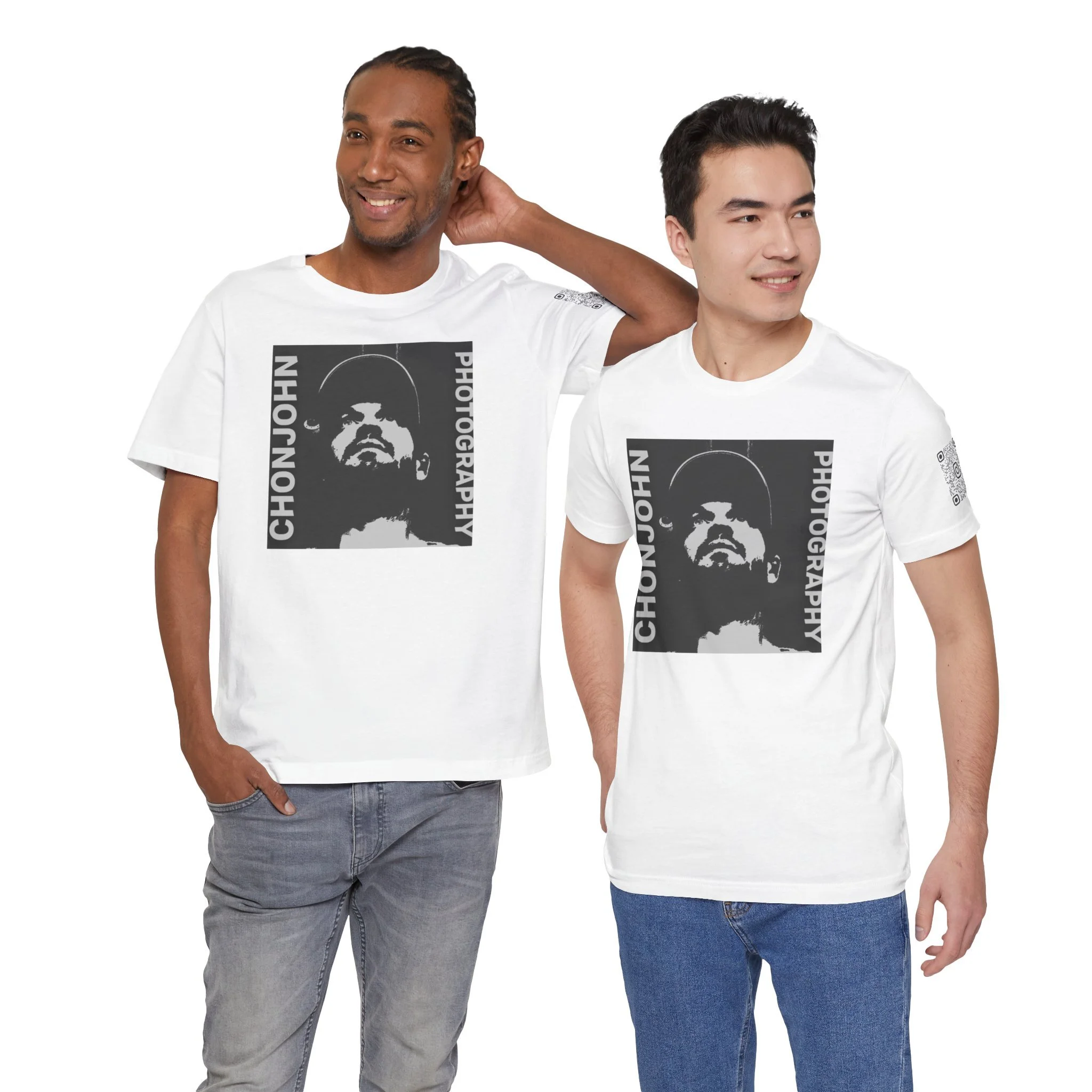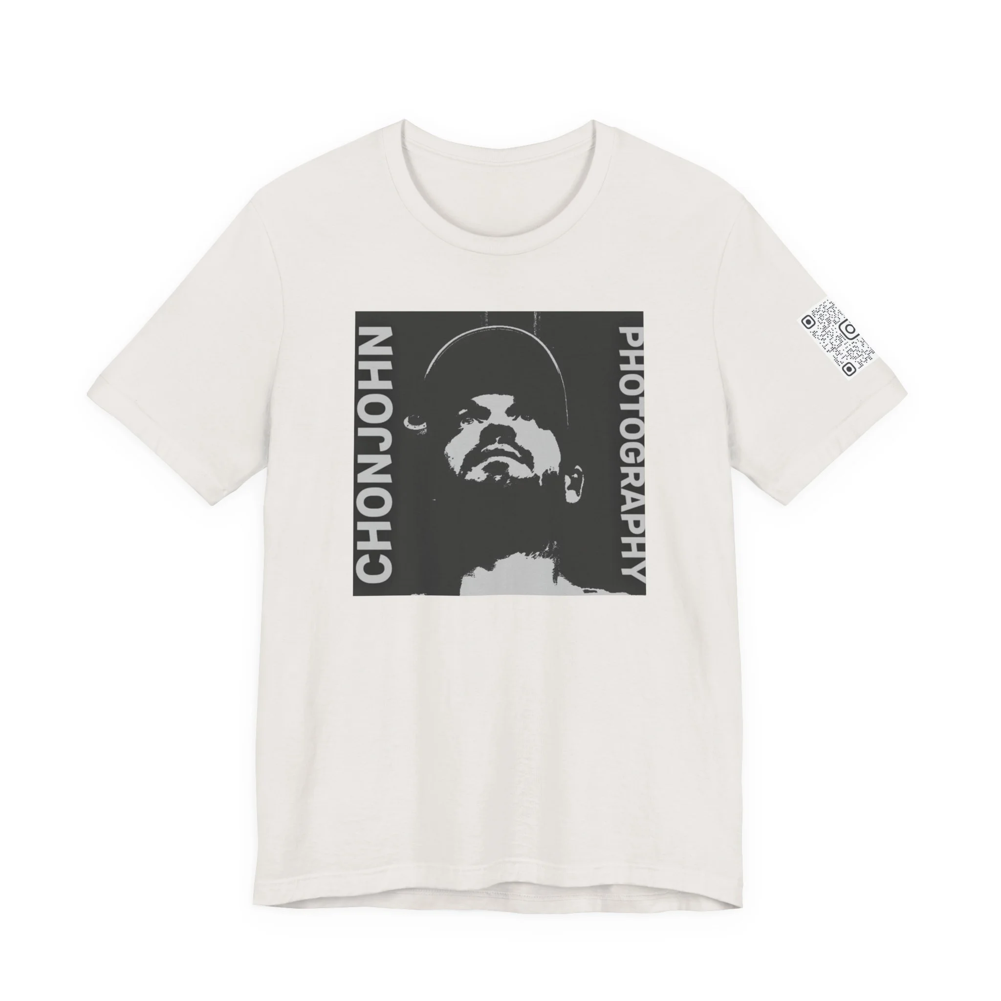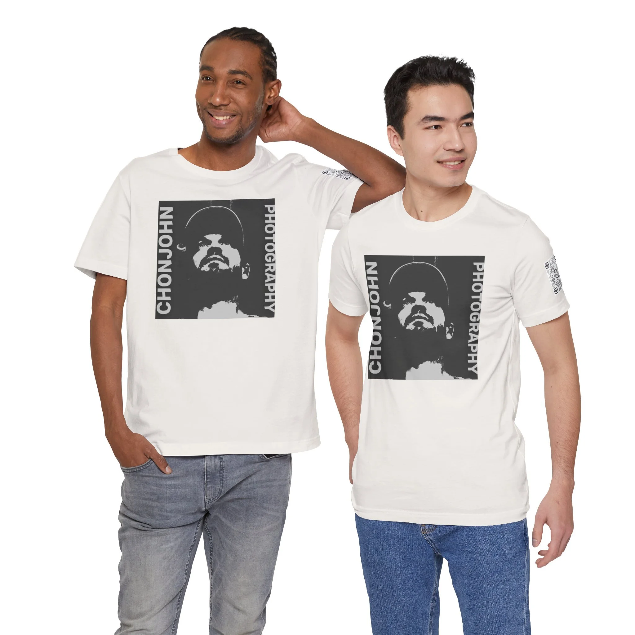 This lightweight jersey tee wears like a trusted camera bag — simple, dependable, and quietly bold. The front carries a high-contrast, square portrait graphic with a gritty, film-noir edge and vertical “CHONJOHN” and “PHOTOGRAPHY” type framing the image. A small, discreet site URL sits across the upper back, keeping the design minimalist but unmistakable. Breathable Airlume combed cotton and a crew neckline make it easy to layer under jackets or wear solo while out shooting. It fits into a photographer’s everyday kit: low-fuss, comfortable, and visually sharp enough to match a creative’s aesthetic whether at a street session, gallery night, or relaxed client meet-up.