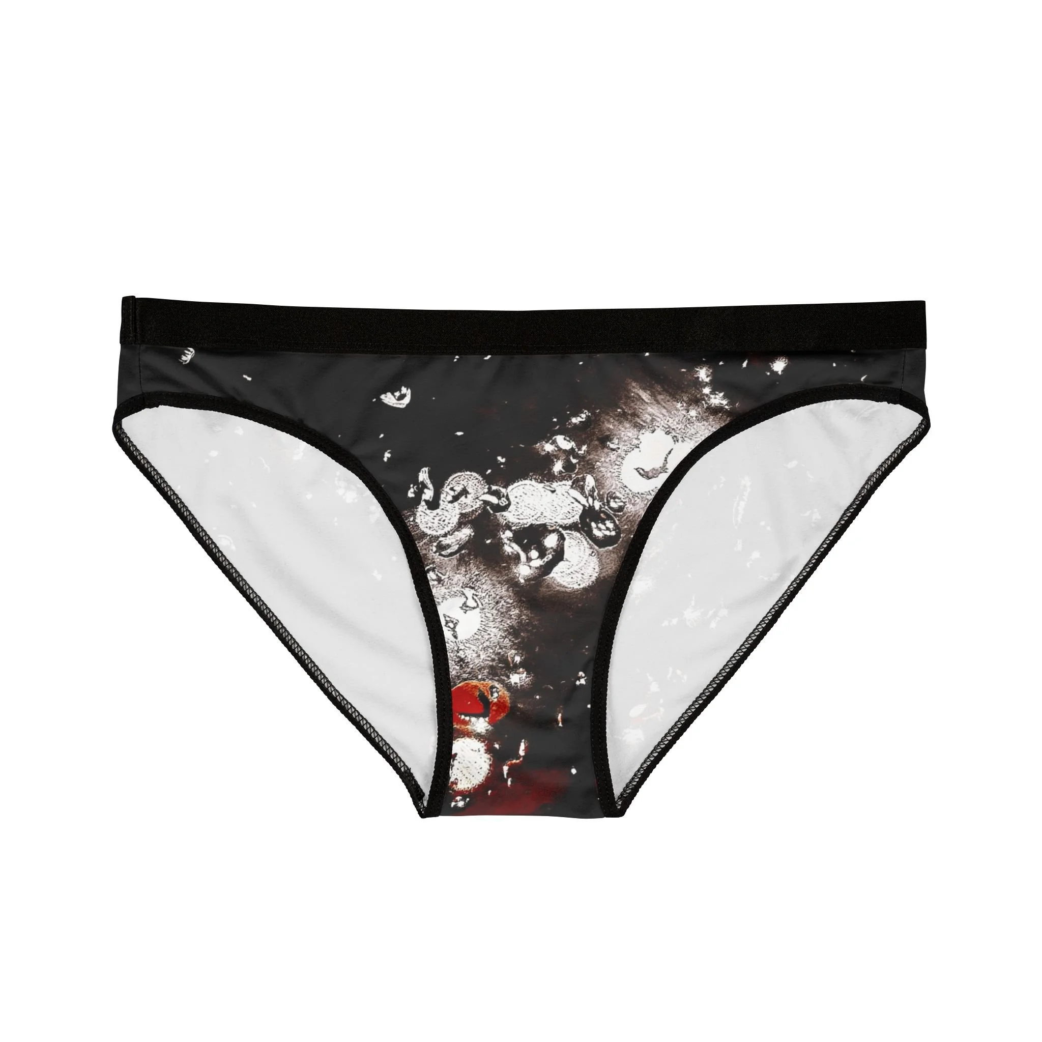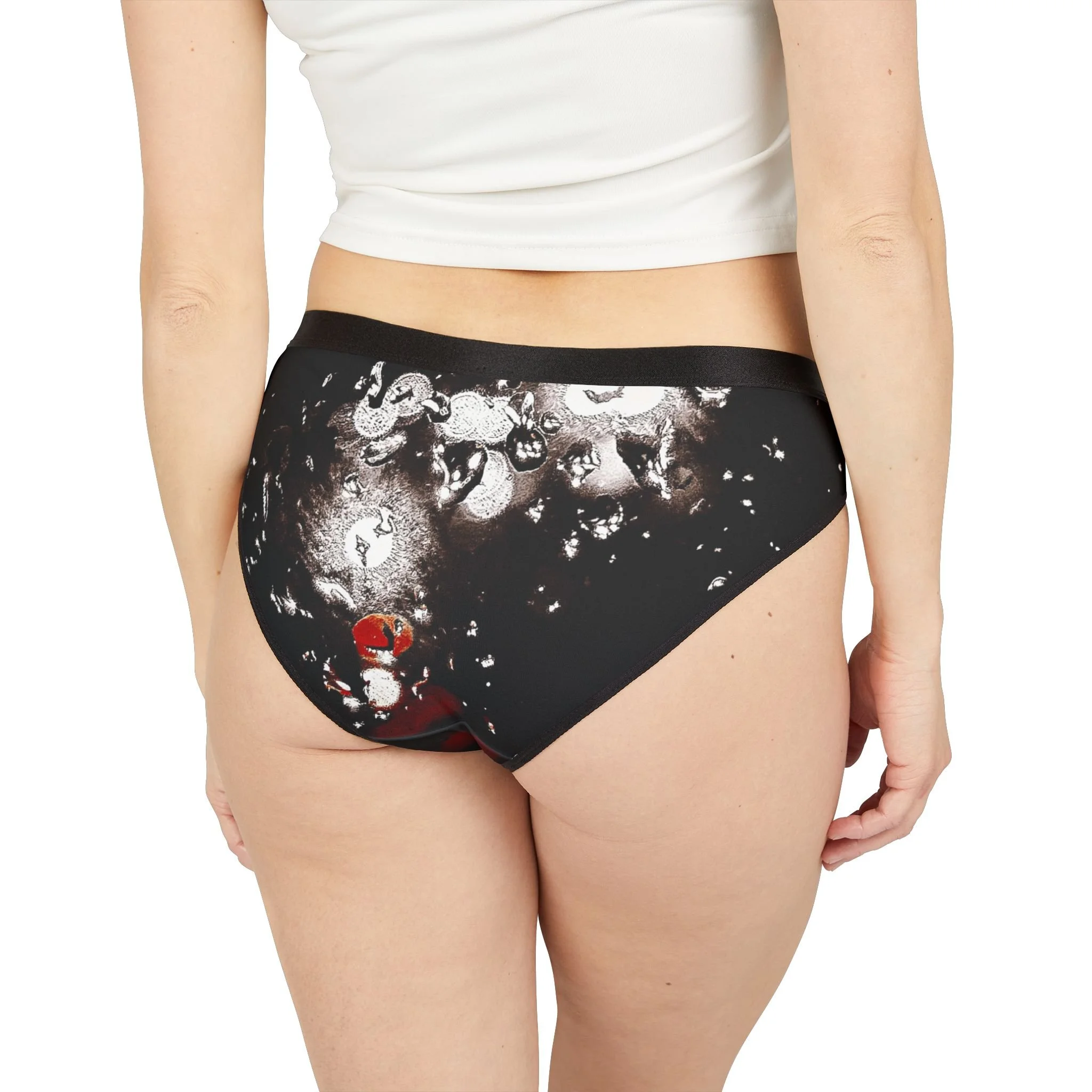 These lightweight, all-over print briefs bring artful darkness to everyday comfort. The smooth polyester-spandex knit breathes and stretches with you, while the plush elastic waistband sits softly at the hips. Subtle gloss and deep charcoal tones with hints of red give the fabric an underground, cinematic feel — like a late-night cityscape or a moody photographic study. Wear them under your favorite jeans or a slip dress and carry that private, confident energy through the day or into late-evening plans.
