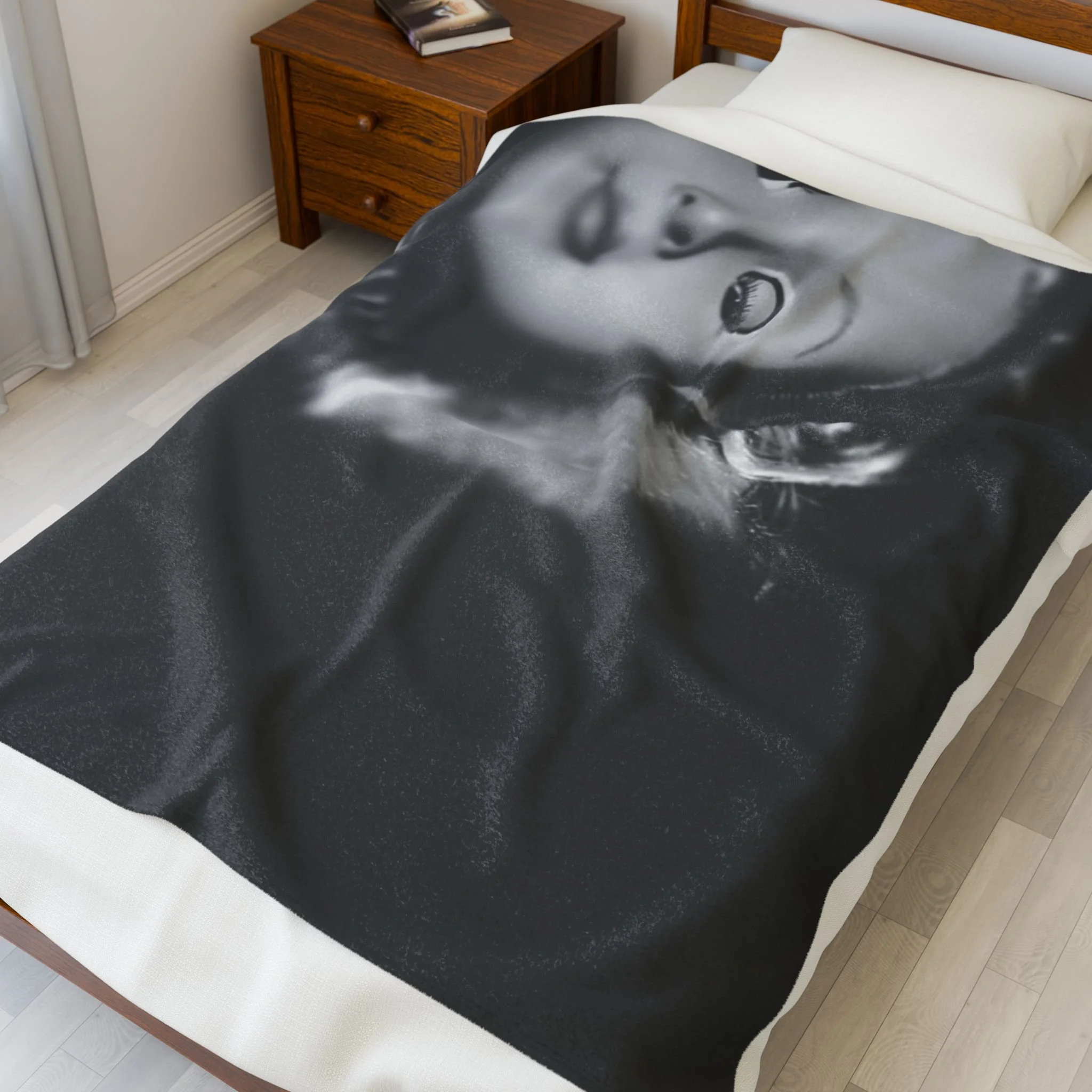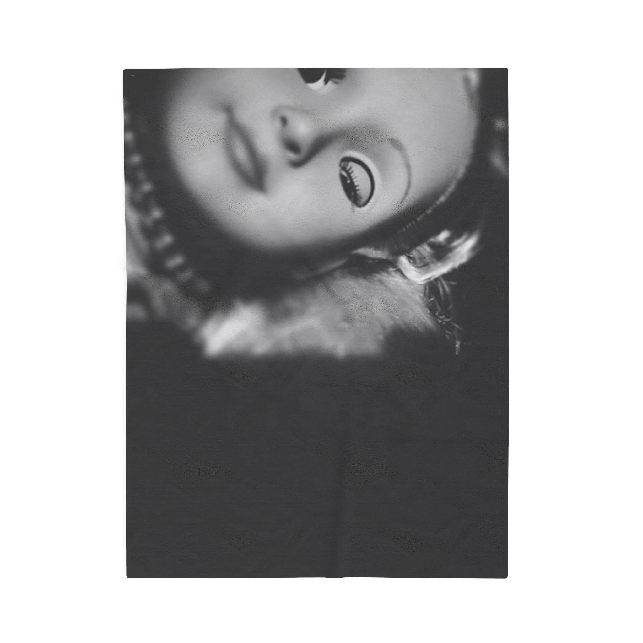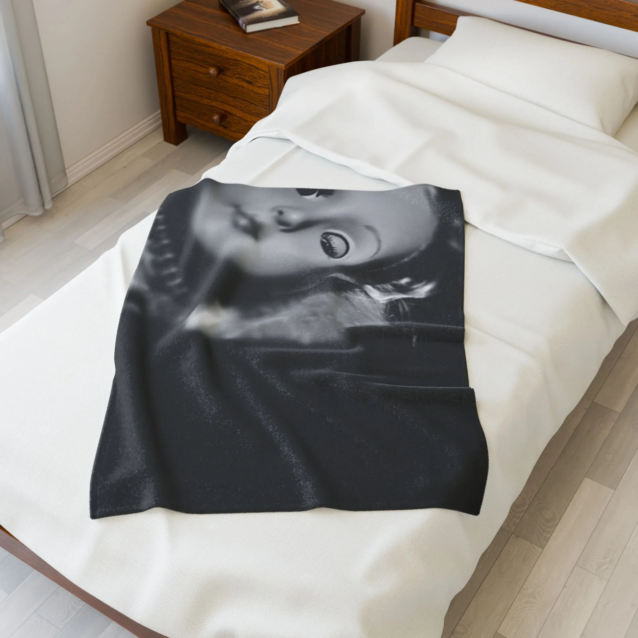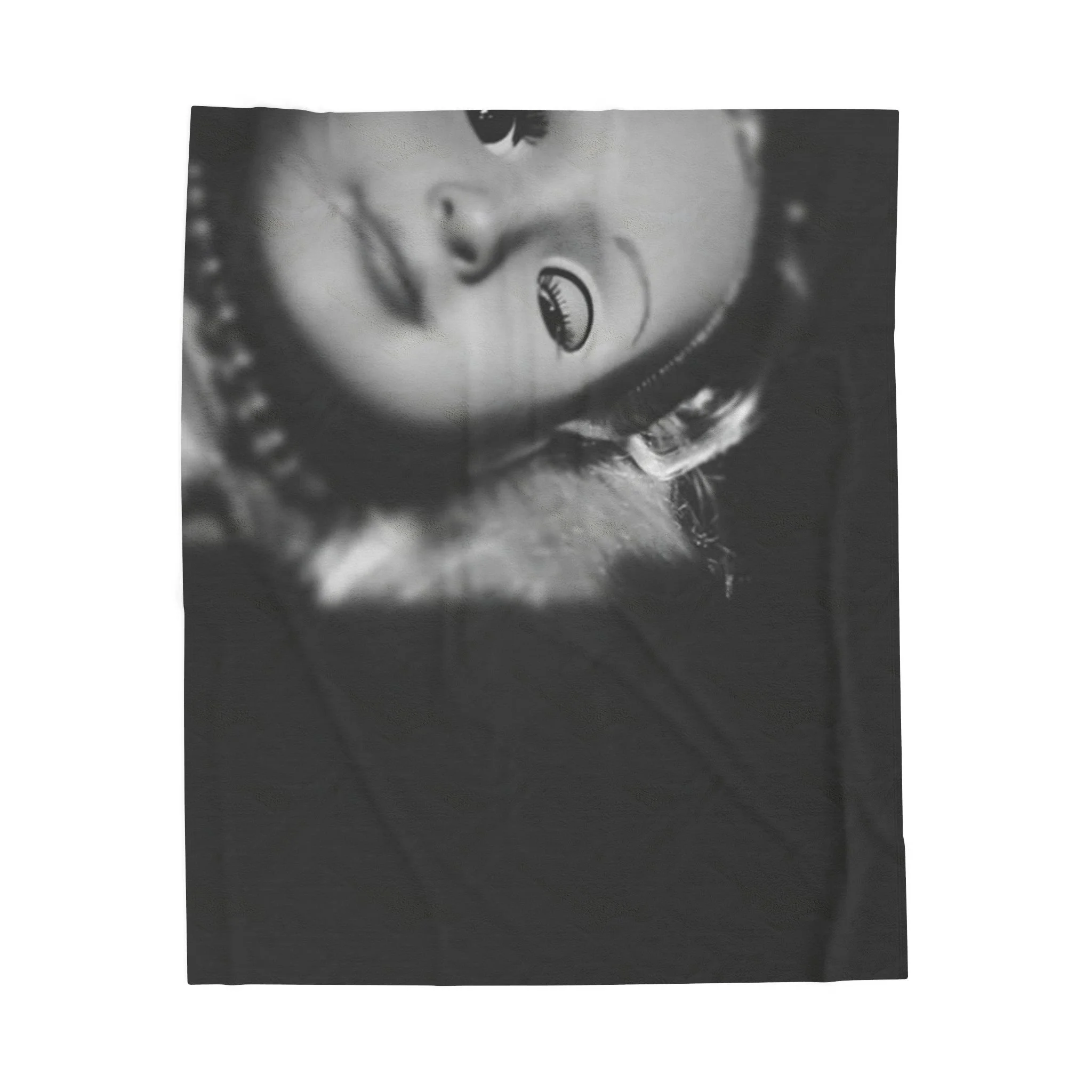 Peek-A-Boo - Creepy Vintage Doll Face Plush Blanket – Gothic Halloween Throw
