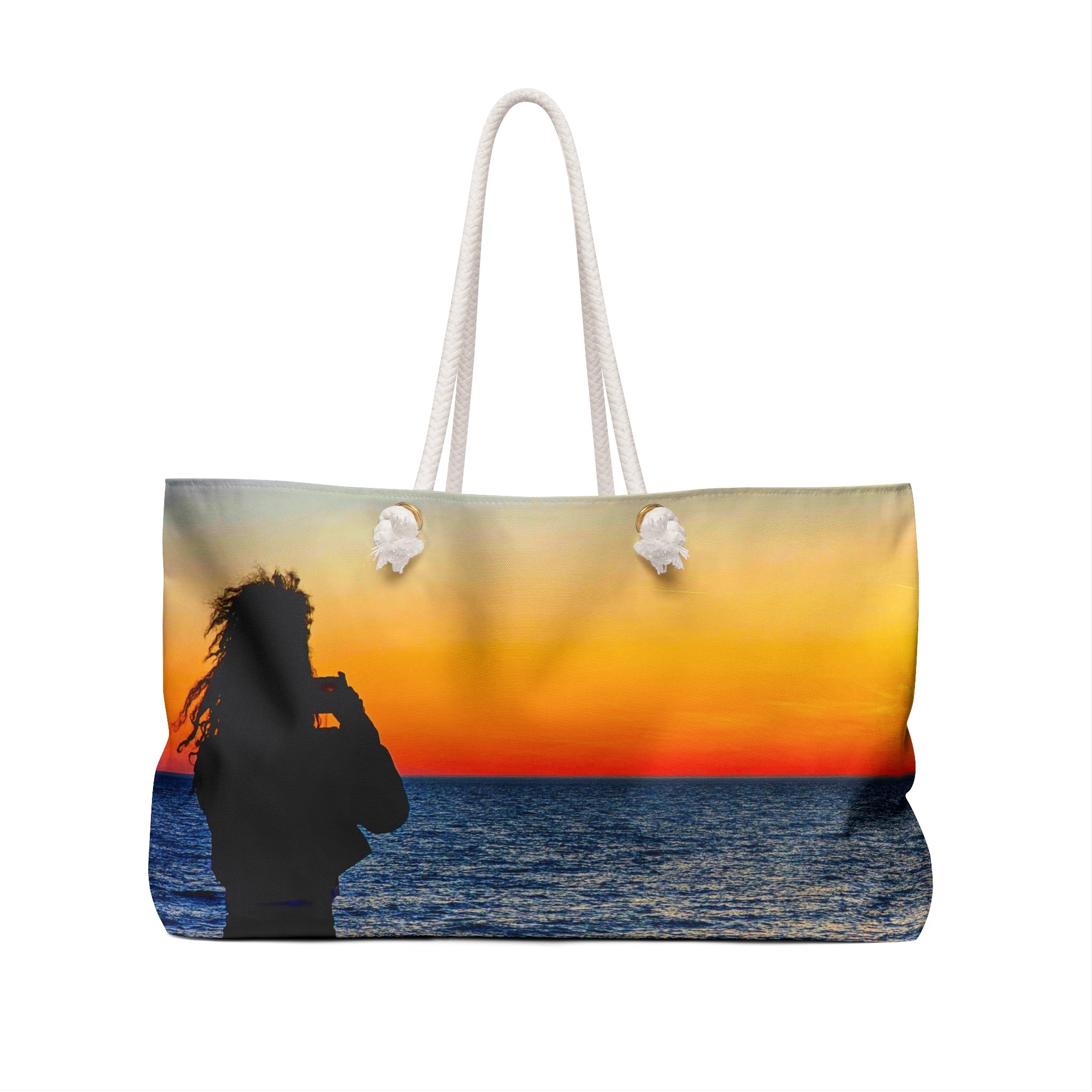 Our oversized Weekender Tote is perfect for your weekend at the beach or in town. The wide-mouthed, durable bag holds a generous amount of personal items and is easily held by its thick rope handles.
