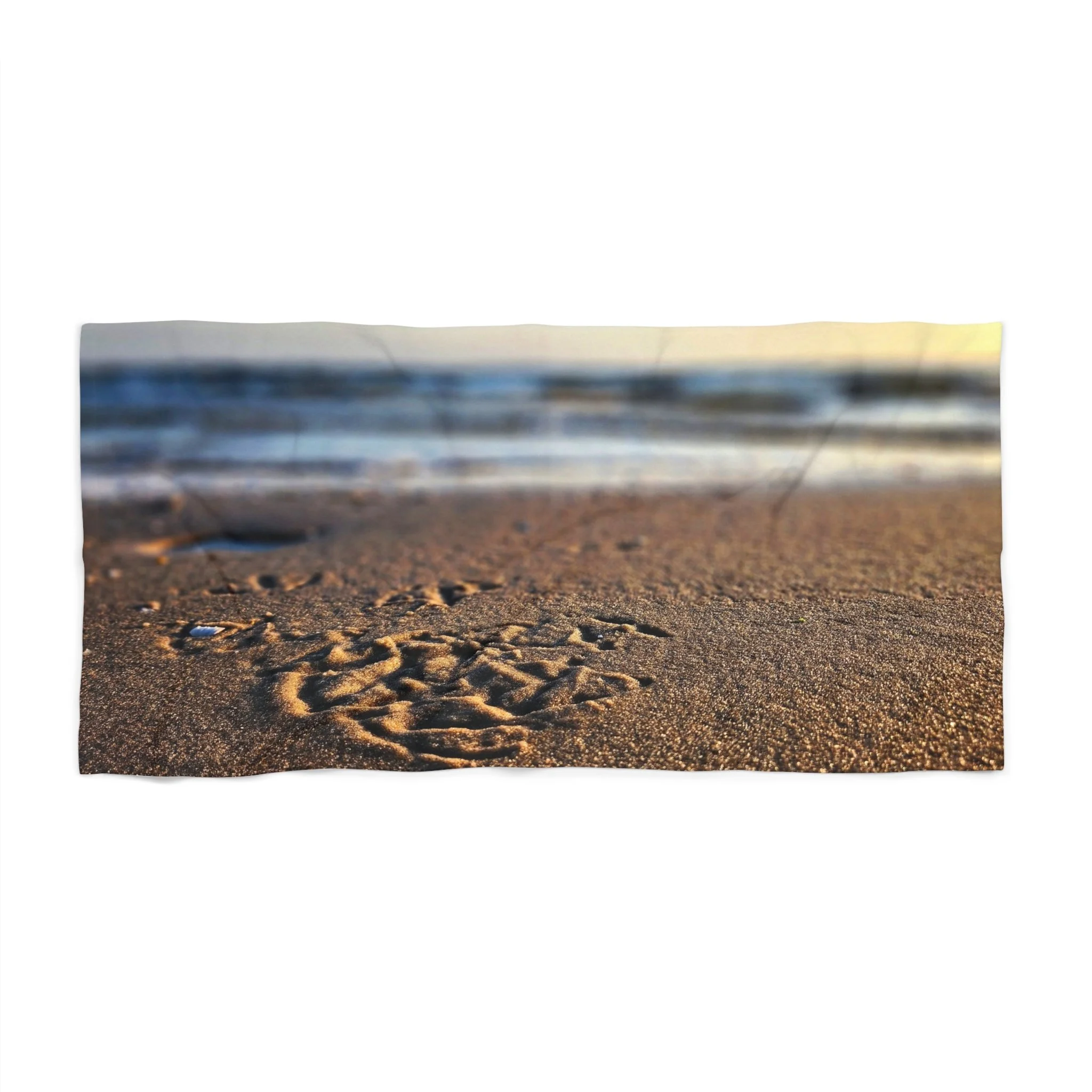 Close your eyes and feel the warm granules beneath your feet. This beach towel captures a quiet shoreline moment — cropping the soft focus of sunlit sand and a distant, breathy surf. It’s built for slow afternoons: the printed front holds the image crisp and vibrant, while the cotton loop backing feels gentle against skin and soaks up the last of the saltwater. Draped over a lounger or spread out for a seaside nap, it brings a calm, sun-warmed vibe to your day at the coast or your backyard escape.
